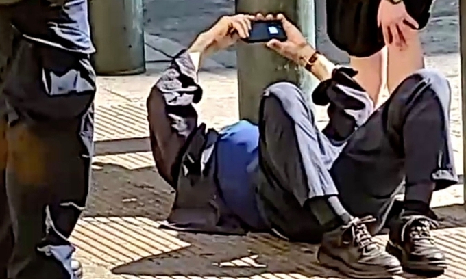 Cụ ông gốc Á nằm dưới đất sau khi bị tấn công trên đại lộ Lexington, New York, hôm 26/8. Ảnh: Citizen.