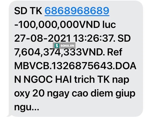 Tin nhắn chuyển tiền mua oxy của ông Đoàn Ngọc Hải gửi nhóm Nhất Tâm