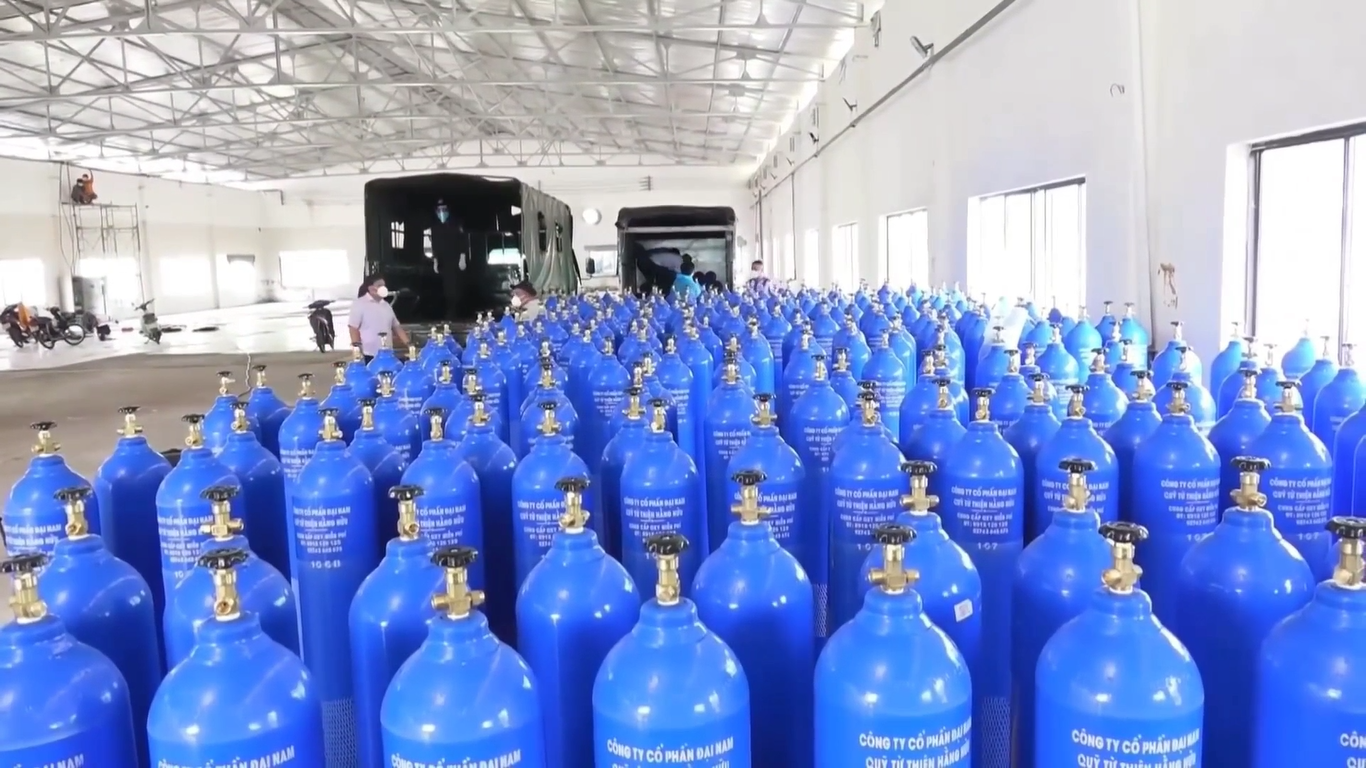 Một lượng lớn bình oxy được cung cấp cho người dân các tỉnh thành phía Nam