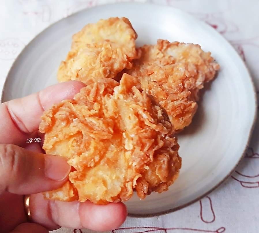 - Sau đó cho cá qua dĩa bột bắp lật trở qua lại 3 lần với bột khô để cá dính đều bột xong đặt cá vào chảo dầu ăn đang sôi (lửa vừa).
