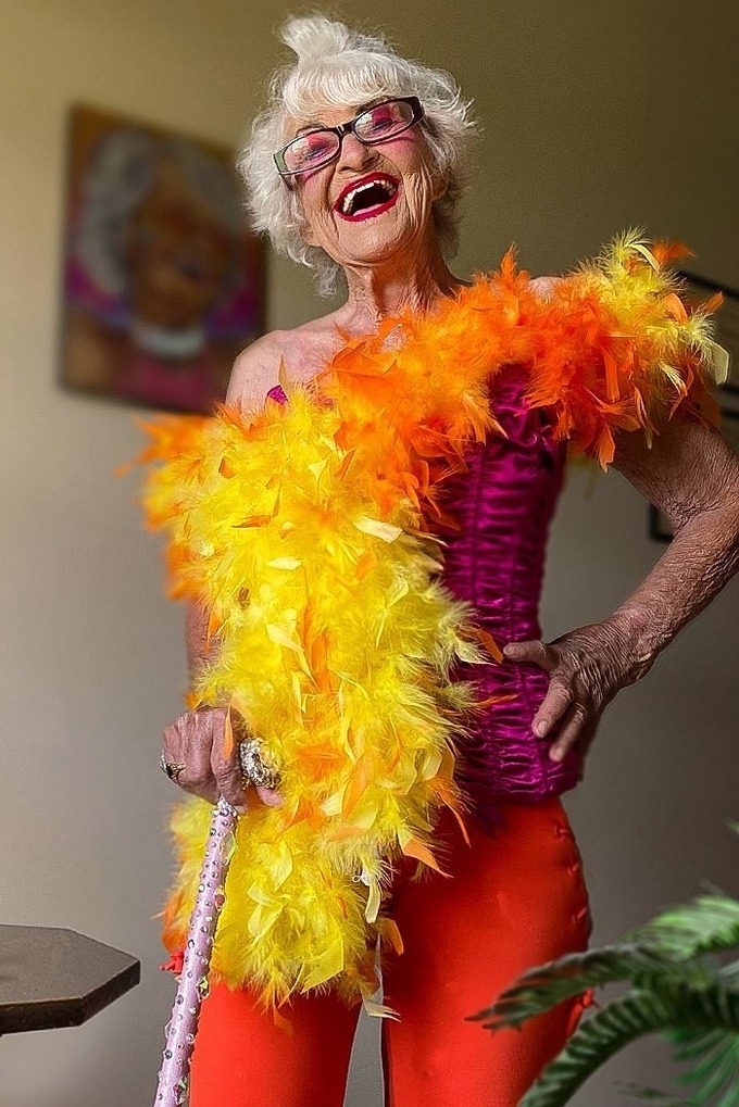 Helen Ruth Elam - granfluencers 92 tuổi - sống tại Mỹ, có khoảng 3,4 triệu người theo dõi trên Instagram. Bà thường mặc trang phục, phụ kiện có màu sắc rực rỡ, nhiều chi tiết cầu kỳ, kết hợp phong cách trang điểm đậm.