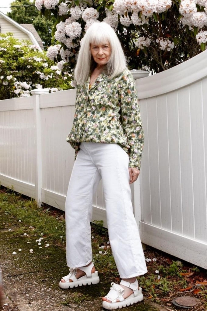 Thỉnh thoảng, bà ăn mặc như thiếu nữ với sơmi, quần jeans hay váy dài. Ảnh: Instagram Lyn Slater