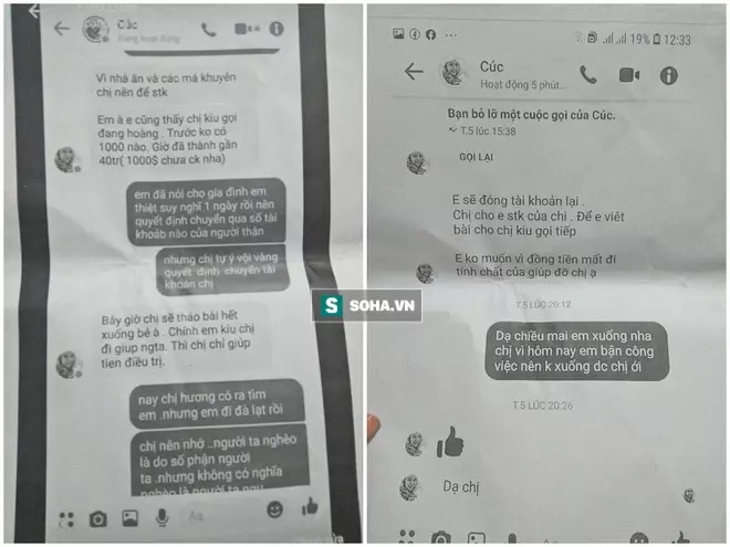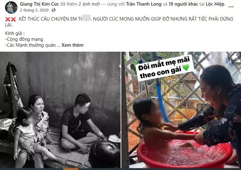 Cô "tấn công" ngược lại, cho rằng gia đình Th. nói dối nhiều chuyện, không trung thực nên cô đã dừng kêu gọi. Giang Kim Cúc thông tin, cô đã cho gia đình 1,5 triệu tiền mặt trong số 21 triệu kêu gọi, còn hơn 19,5 triệu đã được hoàn trả.