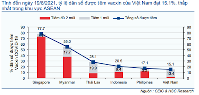 Về tỷ lệ dân số được chích 2 mũi Vaccine chống CoVid, Việt Nam còn đứng sau Miến Điện 3,28%; Lào 13,36%; Cao Miên 47,87%. [1]