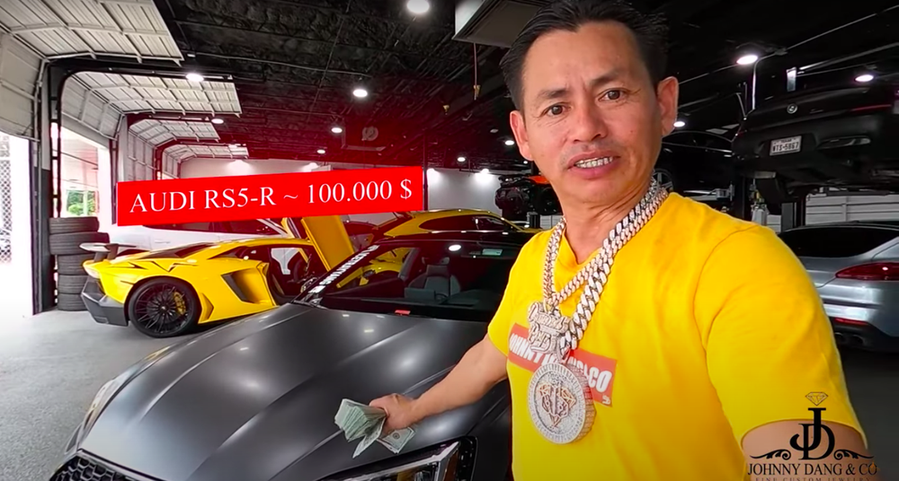 Tỷ phú gốc Việt hào hứng giới thiệu: "Hôm nay tôi có chương trình giveaway thứ 5. Đợt này tôi tặng thêm răng kim cương, 30 ngàn đô tiền mặt và thêm chiếc xe 100 ngàn đô. Chiếc xe này chỉ có 50 chiếc trên thế giới thôi, tên là Audi RS5 R, tôi độ thêm rất đẹp.