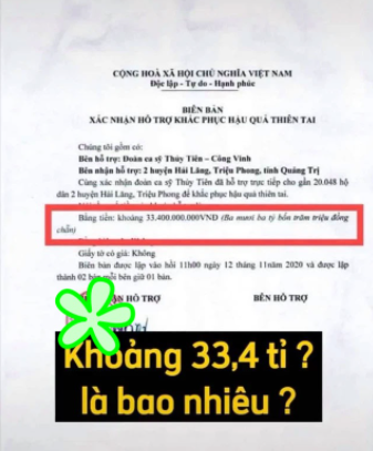 Sau khi 'chốt lịch' livestream. Vợ chồng Công Vinh và Thủy Tiên cũng đã đăng tải giấy xác nhận có mộc đỏ của chính quyền địa phương. Liên quan đến số tiền hơn 178,5 tỷ đồng nữ ca sĩ kêu gọi được cho đợt từ thiện miền Trung bị ảnh hưởng bởi lũ lụt vào cuối năm ngoái.
