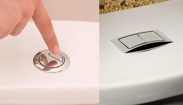 Bạn có biết tại sao có 2 nút ấn xả nước sát nhau không? Là để tiết kiệm nước. Bạn có thể sử dụng nút ấn nhỏ hơn khi bạn đi tiểu để tiết kiệm nước. Và ấn nút vào nút lớn hơn khi đi đại tiện sẽ xả được nhiều nước hơn