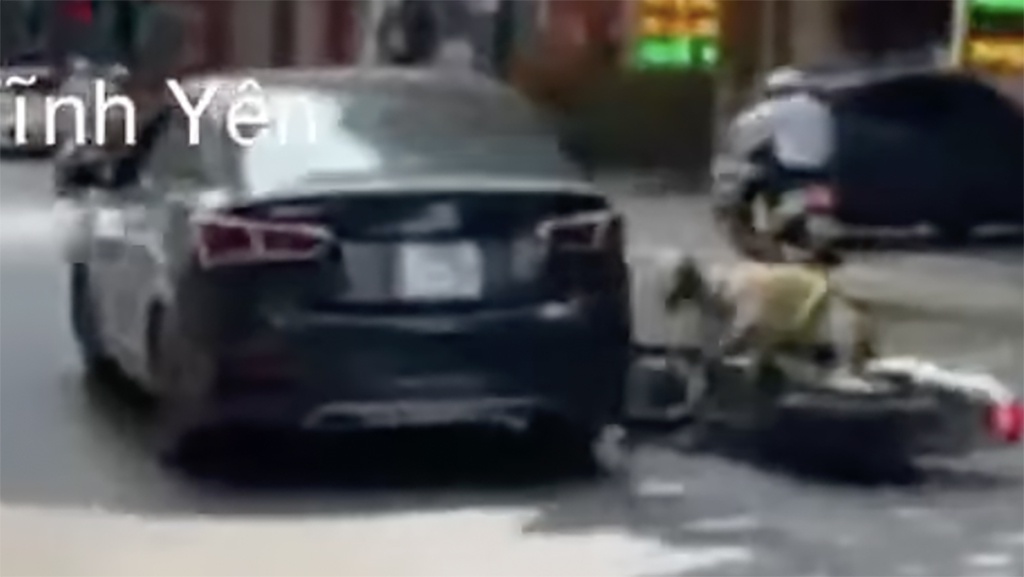 Thời điểm này, một cán bộ CSGT dừng xe máy chuyên dụng chặn trước đầu xe ô tô, cán bộ còn lại đứng hướng dẫn, giải thích và yêu cầu tài xế xuống xe làm việc. Tuy nhiên, thay vì chấp hành, tài xế đã nhấn ga bỏ chạy, húc thẳng vào xe máy cùng cán bộ CSGT đứng trước, khiến cán bộ CSGT ngã xuống đường.
