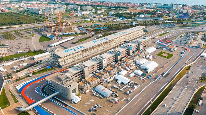 Những khúc cua cuối và khu vực paddock tại Sochi Autodrom