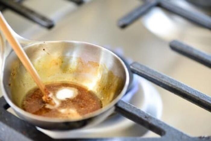 Cho vào đường vừa nóng chảy ở trên khoảng nửa thìa baking soda.