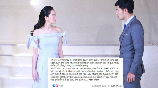 "Em với V. yêu nhau 17 tháng thì quyết định cưới. Tuy nhiên càng sát ngày cưới em càng nhận thấy giữa bản thân với bạn trai có quá nhiều điểm bất đồng trong quan điểm sống.