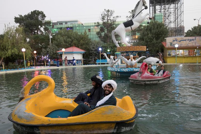 Các thành viên Taliban đi đạp vịt trong công viên giải trí ở tỉnh Herat, Afghanistan (Ảnh: Reuters).