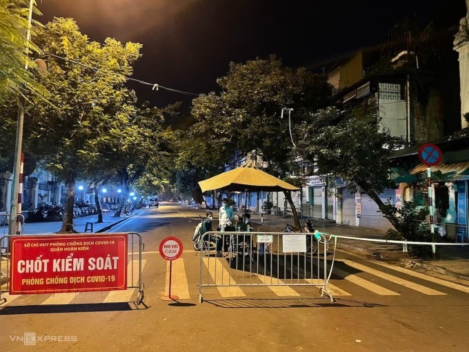 Chốt kiểm soát quanh Bệnh viện Việt Đức tối 1/10. Ảnh: Giang Huy