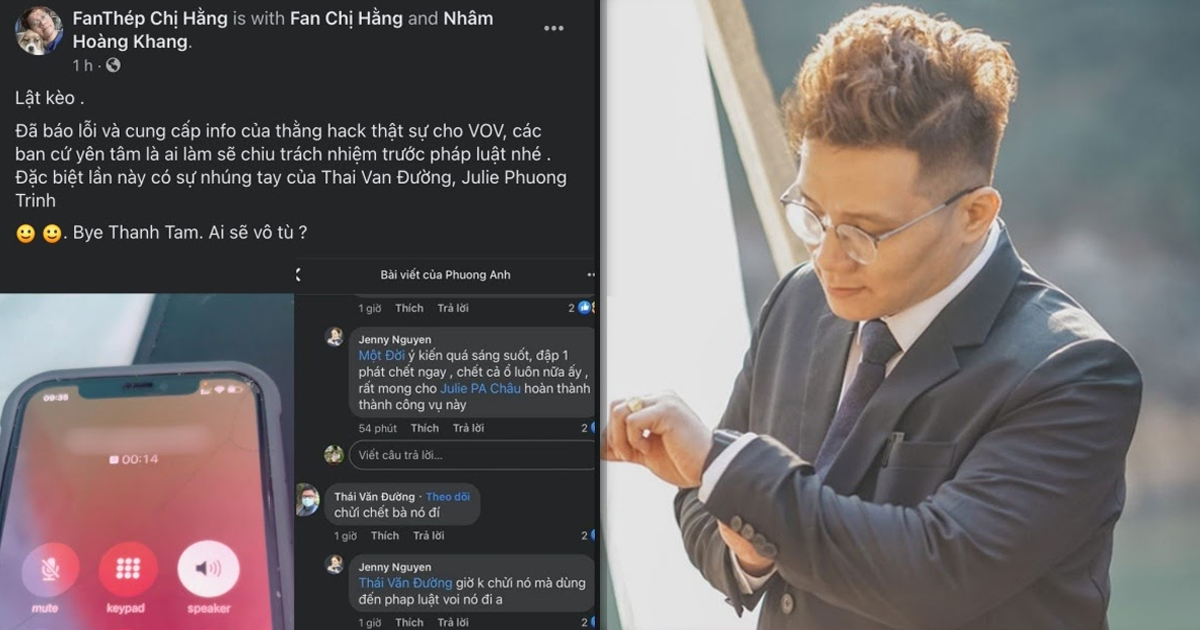Trước khi bị cơ quan chức năng bắt giữ, Nhâm Hoàng Khang không ít lần dùng lời lẽ thóa mạ, đả kích nữ doanh U50. Thậm chí, còn lớn giọng thách thức bà Hằng làm đơn thưa kiện mình.Bên cạnh đó, IT Nhâm Hoàng Khang đã yêu cầu bà Phương Hằng ngưng “réo tên” mình trên sóng Livestream nếu không sẽ dùng thủ thuật làm gián đoạn.Hiện tại, Netizen đang tràn vào các bài viết cũ của nam hacker và để lại bình luận mỉa mai.