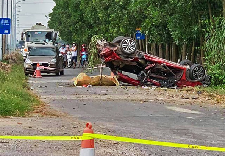 Ôtô chở 6 người biến dạng, lật ngửa giữa đường sau va chạm với xe tải tại huyện Lương Tài, tỉnh Bắc Ninh. Tai nạn làm ít nhất 2 người tử vong.