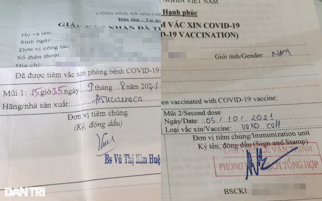 Khi ra cổng chuẩn bị về nhà, anh C. kiểm tra thì tá hỏa phát hiện trên giấy xác nhận tiêm chủng ghi loại vắc xin vừa chích là Vero Cell. Đơn vị tiêm chủng mũi 2 cho nam thanh niên được ghi trên giấy là Bệnh viện Lê Văn Thịnh (TP Thủ Đức).