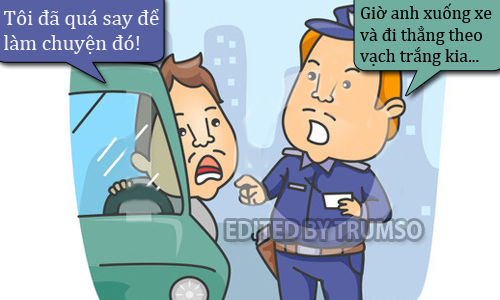 - Được rồi, được rồi! Giờ anh chỉ cần bước xuống xe và đi thẳng theo vạch trắng kia là được.