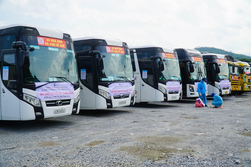 Ngày 9-10, tại trạm trung chuyển hầm Hải Vân (TP Đà Nẵng), những xe khách 45 chỗ và xe tải chở phương tiện đã tập kết sẵn để chuẩn bị chở bà con từ miền Nam về quê. Đây là những chuyến xe nằm trong chương trình "Chuyến xe đồng bào" do các nhóm thiện nguyện tại Đà Nẵng chung tay thực hiện.Trước khi lên xe, người dân được lực lượng y tế xét nghiệm nhanh COVID-19, hỗ trợ nước uống, thức ăn. Đặc biệt, những người về quê bắt buộc phải mang đồ bảo hộ, đeo khẩu trang để đảm bảo an toàn phòng dịch.Những xe khách 45 chỗ sẽ ưu tiên chở bà bầu, trẻ em, người bệnh trước, tất cả mọi người phải có kết quả âm tính mới được lên xe, còn trường hợp dương tính sẽ được các tình nguyện viên giao cho đội ngũ y tế địa phương điều trị, cách ly theo đúng quy định.