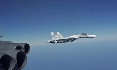 Tiêm kích Su-35 trong một lần áp sát B-52H Mỹ.