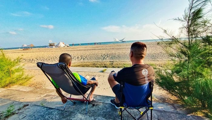 "Trong những ngày đầu ở Phòng Thành Cảng, chúng tôi tìm thấy một bãi biển vắng, tôi ngủ trong lều còn Liang ngủ trên xe. Chỗ này đáp ứng những mong đợi của cả hai, ít người qua lại và biển rất đẹp. Đêm đến, bầu trời đầy sao sáng và cao vời vợi".