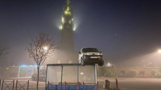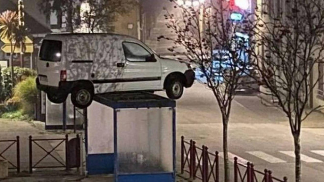 Cảnh sát một thị trấn nhỏ của Pháp được báo tin về một chiếc xe tải van đang đậu ngay ngắn, rất cân bằng trên nóc nhà chờ xe buýt. Sáng sớm hôm thứ hai ngày 11/10/2021, cư dân thị trấn Plounéventer (Finistère, Pháp) thức dậy trước một cảnh tượng kỳ lạ: một chiếc xe tải van màu trắng đang đậu ngay ngắn trên nóc nhà chờ xe buýt, theo AutoEvolution.
