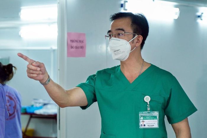 Ông Nguyễn Quang Tuấn tại Bệnh viện Dã chiến số 16 (TP.HCM) trước khi bị khởi tố. Ảnh: Chí Hùng.
