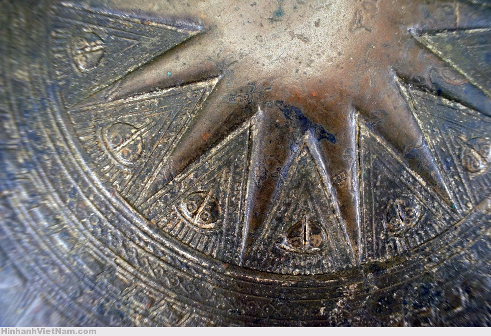 Chính giữa mặt trống là hình ngôi sao nổi 14 cánh. Xen giữa các cánh sao là những họa tiết hình tam giác.