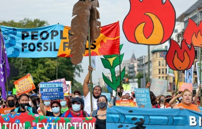 Biểu tình chống biến đổi khí hậu ở thủ đô Washington, Mỹ, ngày 15/10. Ảnh: Reuters.