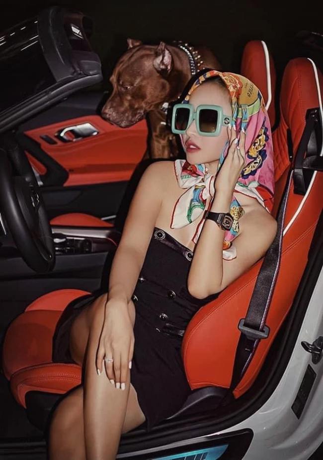 Cô thường xuyên xuất hiện bên những chiếc siêu xe đắt đỏ với những concept thời trang ấn tượng.