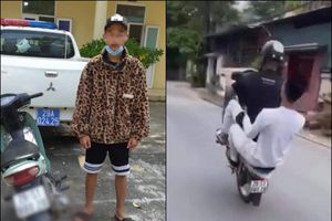 Trước đó, trang facebook Công an TP Hà Nội nhận được clip phản ánh của người dân ghi lại hình ảnh nam thanh niên điều khiển xe máy chở người ngồi sau không đội mũ bảo hiểm, "bốc đầu" xe máy gây mất trật tự an toàn giao thông tại khu vực đường 23B, huyện Đông Anh.