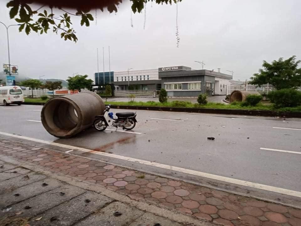 Có thể thấy khu vực xung quanh hiện trường xảy ra vụ tai nạn cũng xuất hiện nhiều ống cống khác nằm trên lề đường và dưới lòng đường (Nguồn: Mạng xã hội)