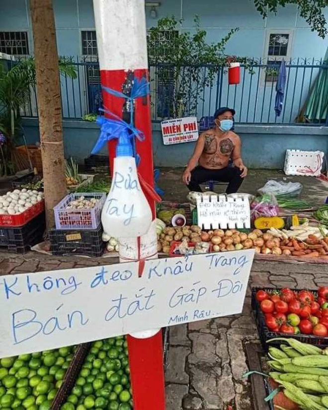 Một vài lần những tấm biển của anh viral khắp MXH như ai không đeo khẩu trang tính giá gấp đôi, để khách tự cân, tự tính tiền vì chủ hàng đã... say rồi, thường xuyên tặng, cho rau củ hay gạo cho những người khó khăn…