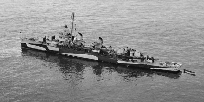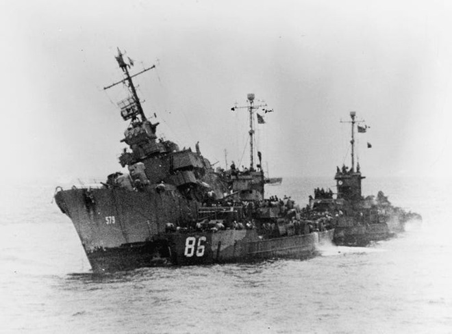 Hải quân Mỹ giải cứu tàu Porter khi nó chuẩn bị chìm xuống dưới đáy đại dương năm 1945 (Ảnh: Hải quân Mỹ).