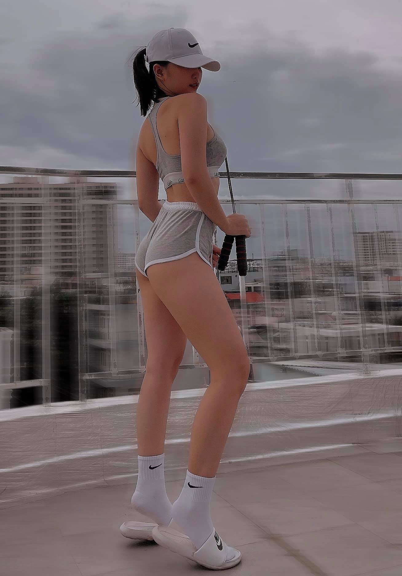 Khoe thân hình săn chắc chuẩn gymer, nàng hot girl lựa chọn trang phục ôm dáng và siêu ngắn.