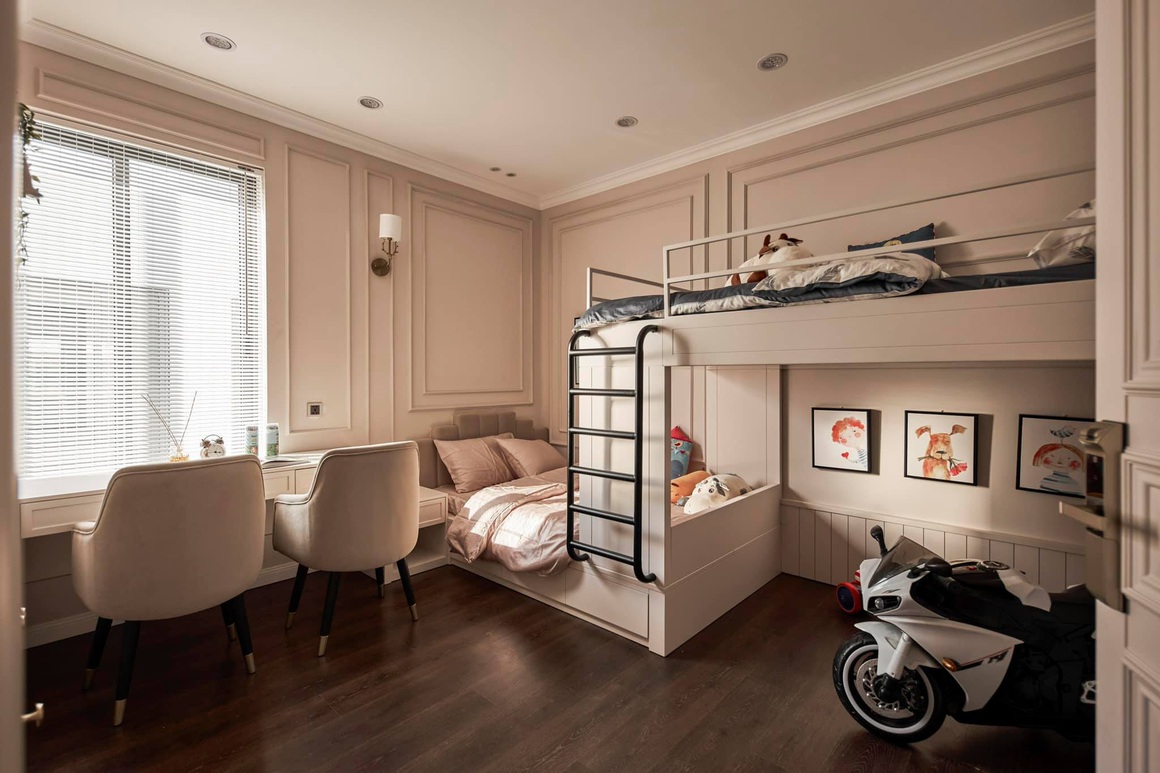 Ở tầng 2, chị Bảo Nghi và chồng ưu tiên dành trọn cả tầng này cho phòng ngủ master, tầng 3 được chia làm 2 phòng ngủ nhỏ cho bố mẹ cùng các con.
