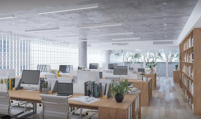 Tòa nhà được hình thành bởi các khối hộp thủy tinh xếp xen kẽ nhau và tạo thành khoảng sân trên mái để trồng cây xanh.