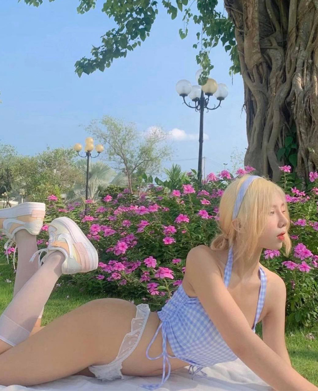 Pinkmy chuộng chụp ảnh theo concept "Lolita" trong những bộ nội y mỏng manh giữa thiên nhiên.