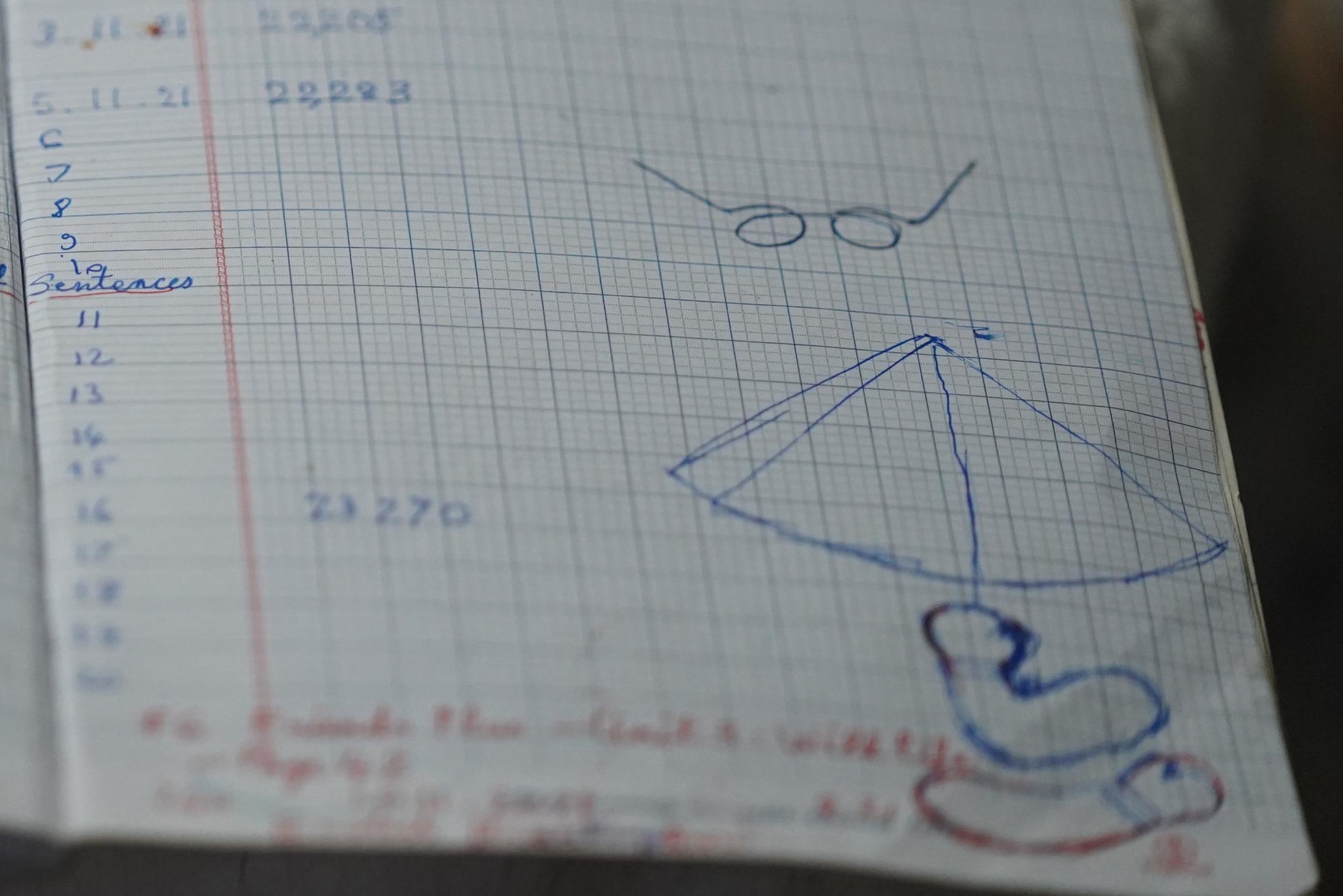 Cũng theo nghệ nhân, trước khi làm một vật gì cũng cần định hình xem tác phẩm đó có hình dạng như thế nào, tỉ lệ, kích cỡ bao nhiêu để chọn loại trứng to, nhỏ, tròn, dài và có màu sắc sao cho phù hợp. Các phần rập của ông Tâm được vẽ đơn giản trên giấy tập như thế này.