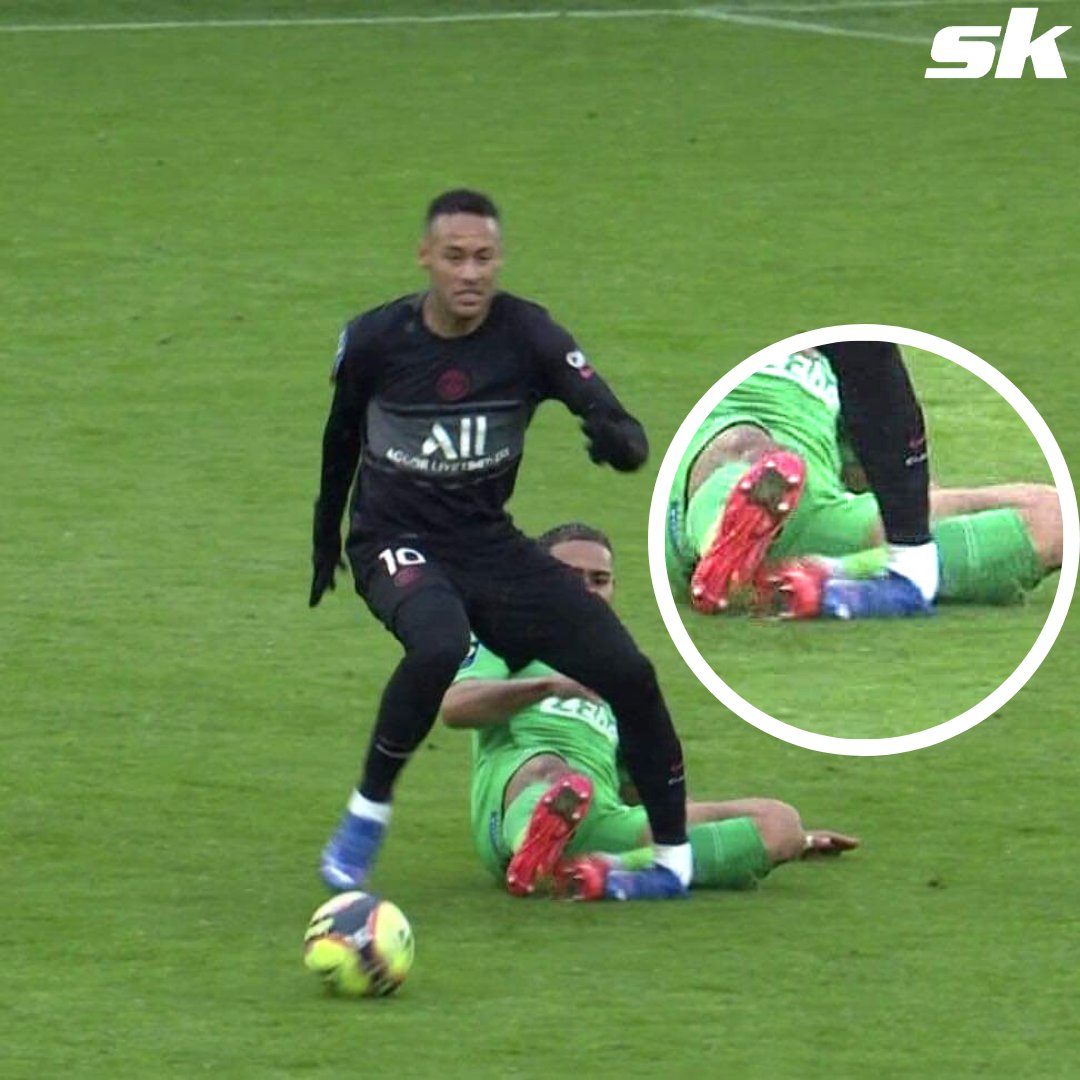 Phút 84 trong trận đấu diễn ra tại sân vận động Geoffroy Guichard, Sergio Ramos chuyền cho Neymar. Khi đang dẫn bóng, số 10 của PSG bị Macon áp sát từ đằng sau. Số 27 bên phía St Etienne quyết định thực hiện cú xoạc theo hướng chéo để ngăn cản pha rê dắt của Neymar.