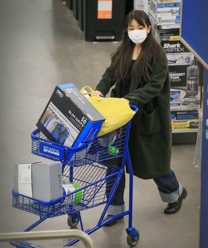 Mako giản dị đi dạo phố và mua sắm một mình ở Mỹ.
