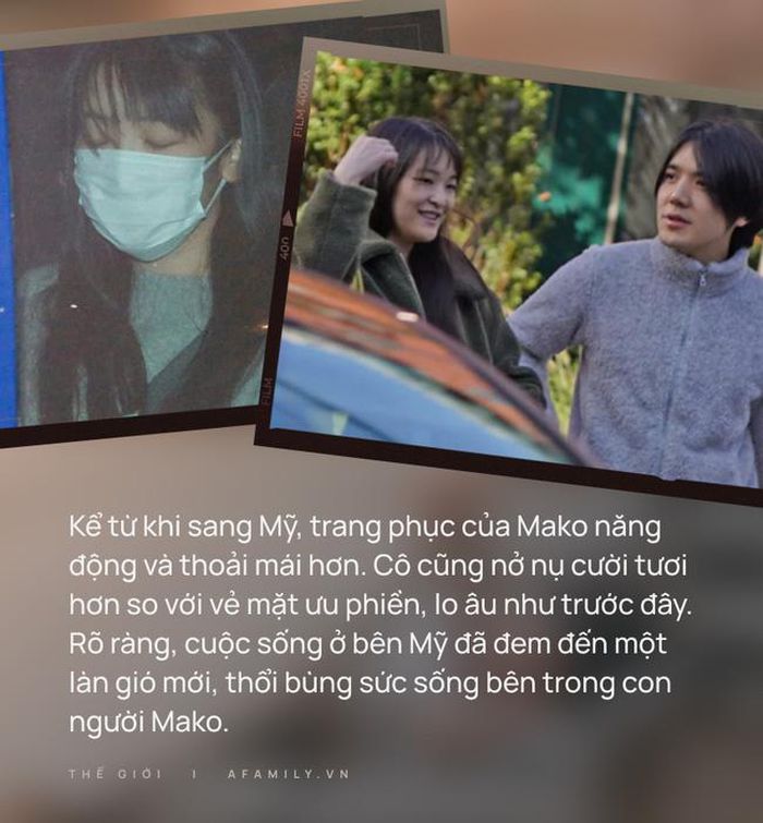 Chỉ chưa đầy 3 tuần sau khi đến Mỹ, truyền thông và dư luận đã chứng kiến sự "lột xác" ngoạn mục với những hình ảnh chưa từng thấy trước đây của Mako. Nếu như ở Nhật, sau khi kết hôn, Mako cần một người phụ trách đi mua sắm giúp mình để hạn chế gây chú ý thì khi sang Mỹ, Mako đã có thể tự mình đi mua đồ dùng thiết yếu cho gia đình.