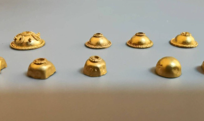 Các nhà khảo cổ vừa khai quật được 9 món trang sức trông giống cúc áo làm từ vàng nguyên chất trong ngôi mộ 2.000 năm.