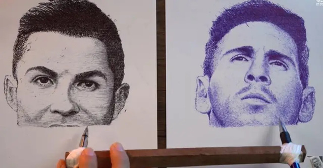 Old  Default Nghệ sĩ Việt vẽ Ronaldo và Messi cùng lúc chỉ bằng một tay mà đẹp như máy in