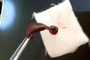 Do con đỉa nằm ở vị trí hiểm, bám chặt nên khó khăn cho việc nội soi. Phải mất hàng chục phút, con đỉa dài 6cm mới được gắp ra khỏi mũi bệnh nhân khi đã hút căng máu.