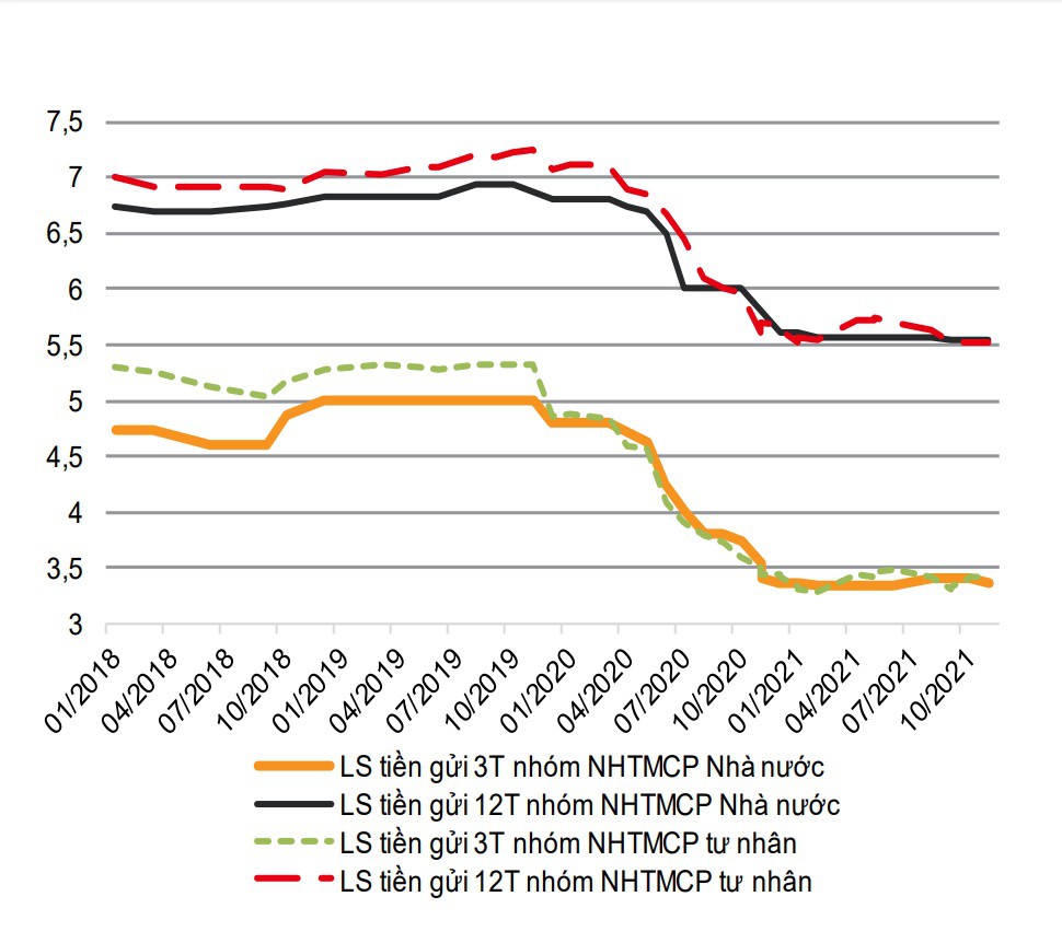 Khi đó, lãi suất tiền gửi kỳ hạn 12 tháng tại các ngân hàng thương mại sẽ tăng lên mức 5,9-6,1%/năm vào cuối năm 2022. Tuy vậy, mức lãi suất này vẫn thấp hơn so với mức 6,8%/năm trước giai đoạn dịch bệnh.