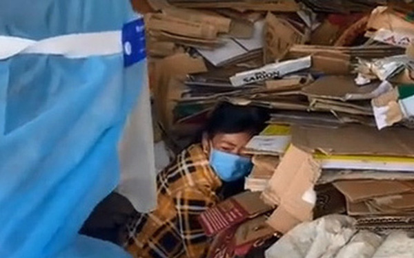 Sợ bị đi cách ly, người phụ nữ đã trốn trong đống phế liệu nhưng vẫn bị tìm ra.