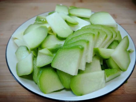 Bước 2: Cắt su su thành từng lát mỏng, để riêng dùng sau.