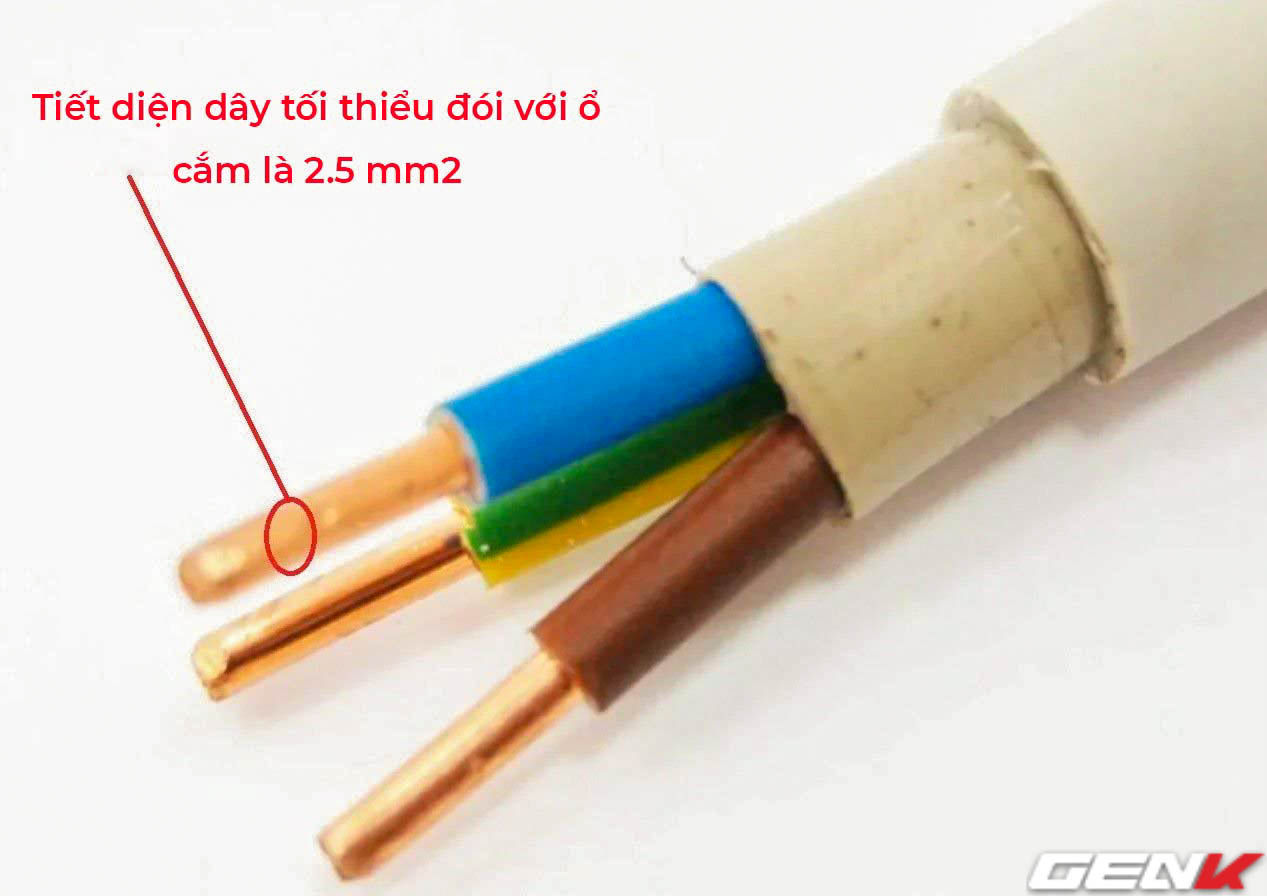 Hãy nhớ lại kiến thức vật lý phổ thông: Tải tiêu thụ càng lớn thì yêu cầu tiết diện của dây dẫn cũng càng lớn. Vì vậy, nếu bạn định dùng dây điện có tiết diện lõi 1,5 mm2 cho hệ thống đèn chiếu sáng thì đối với ổ cắm sẽ cần dùng loại dây điện có tiết diện 2,5 mm2.