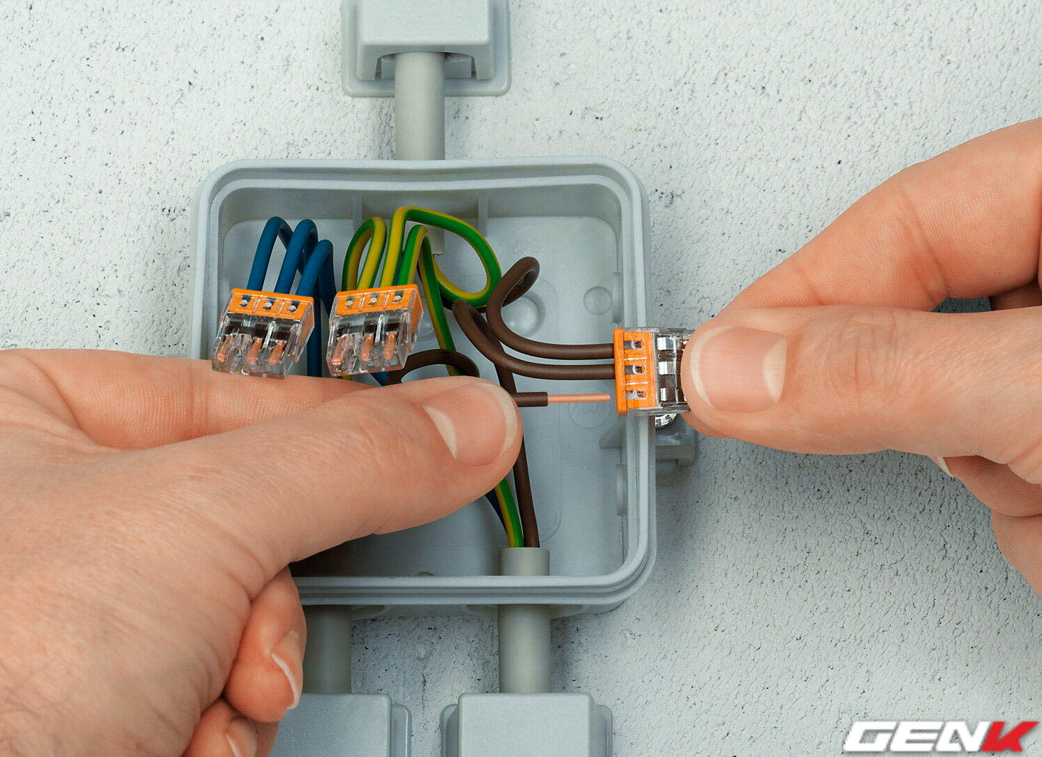 Nếu hộp đấu dây để mở thì các đường dây phục vụ chiếu sáng có thể được kết nối dễ dàng bằng những khối nối dây nhanh WAGO.