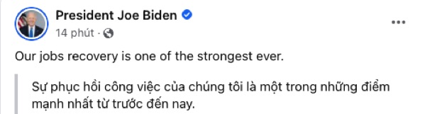 Trong một phát biểu, Tổng thống Biden đánh giá cao dữ liệu việc làm mới, coi đây là dấu hiệu của một đợt hồi phục về việc làm “mang tính lịch sử” và người dân Mỹ đang đi làm trở lại và gia tăng thu nhập.